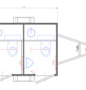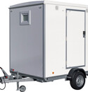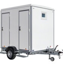 Deze toiletwagen beschikt over 2 wc's en 1 urnioir.