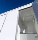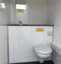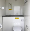 De toiletwagen heeft een gescheiden dames- en herengedeelte.