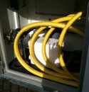 Een tuinslang met gardenakoppeling voor watervoorziening in de wagen.
